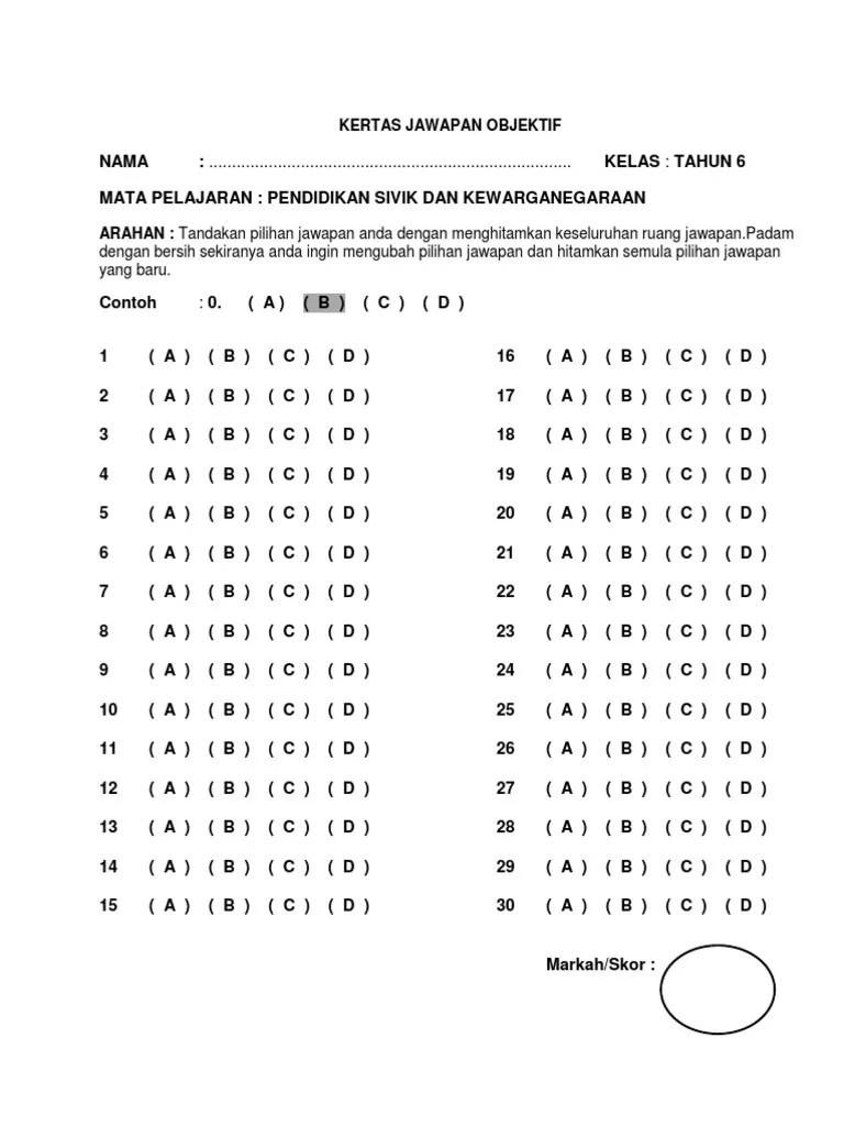 Kertas Jawapan Objektif - Kertas Jawapan Objektif
